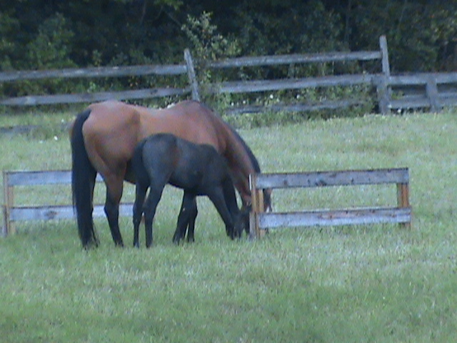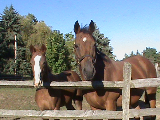 Phase Two, "Squeaky" is a 1990 15'2'' half TB/ half QH mare. Her sire is Babamist. Her dam, Phase Dance was a 16'2'' quarter horse that Victoria competed successfully at Advanced. Squeaky also competed successfully to Advanced although after having some tendon issues it was decided that she deserved to hang out and produce some babies. Squeaky was a cross country machine and would certainly jump anything for Victoria. She now has five offspring : Tiger, Coco, Isabella, Lilly, and Vera. She was a terrific mother to her children and they were very healthy babies.
